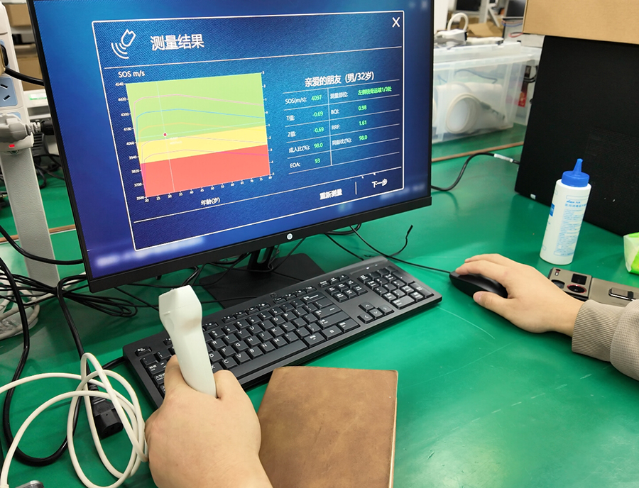 2.配備專業探頭導航功能,通過界面實時顯示的參數,可清晰查看探頭與測量面的接觸狀態,輔助操作人員快速校準檢測角度。即便非專業技術人員,經簡單指導即可熟練上手,大幅降低體檢中心的人員招聘門檻與培訓成本,保障檢測流程的標準化。
