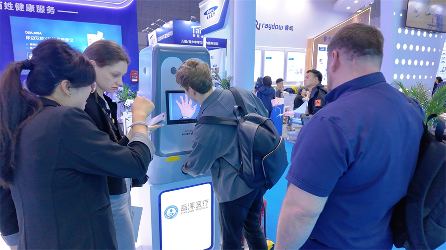 專為兒童青少年生長發育監測打造的X射線骨齡儀,腕骨成像細節清晰細膩,配備TW3、中華05等多種骨齡算法,輔助醫生判斷骨齡、預測身高,為兒童生長發育異常篩查、內分泌疾病診斷提供數據支撐。展位前,眾多兒科、內分泌科醫生前來深度交流,對產品臨床價值給予認可。