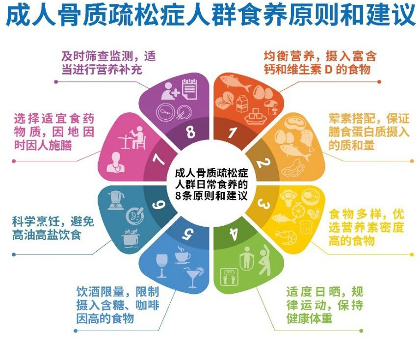 食養(yǎng)指南聯(lián)合現(xiàn)代營養(yǎng)學(xué)和傳統(tǒng)食養(yǎng)中西醫(yī)的優(yōu)勢,將食藥物質(zhì)、新食品原料納入合理膳食體系,針對不同季節(jié)、地域及人群提供營養(yǎng)健康指導(dǎo)和食譜套餐示例,增強膳食建議的實用性和可操作性。對骨質(zhì)疏松癥人群的日常食養(yǎng)提出 8 條原則和建議。