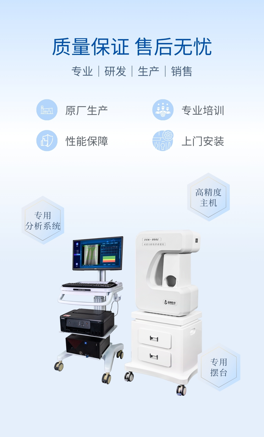 DXA- 800E 雙能 X 線骨密度儀測量骨密度,準確度較高,重復性較好,是醫生臨床診斷好幫手。