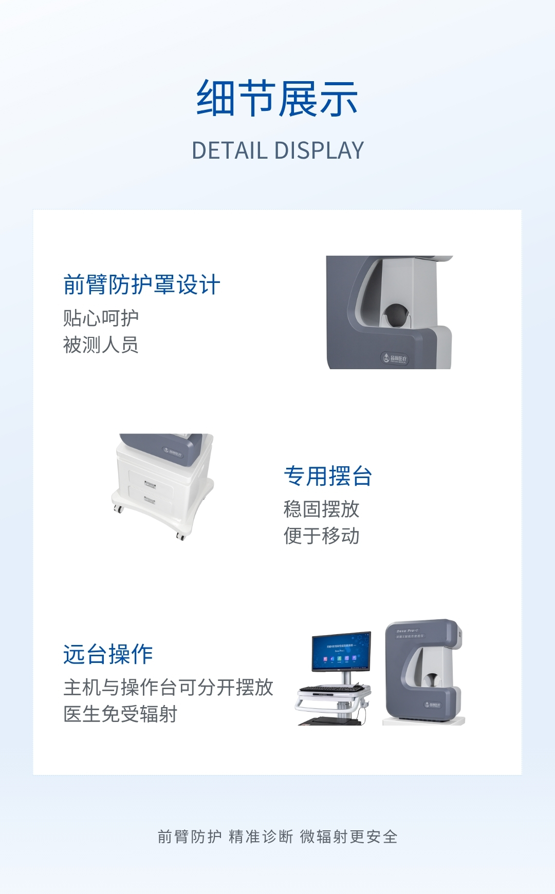 Dexa Pro 系列雙能 X 射線骨密度儀測量手臂前段,這些部位易顯露,操作簡捷,無需消毒。測量速度快,方便醫生及病人,可用于大人群檢測。